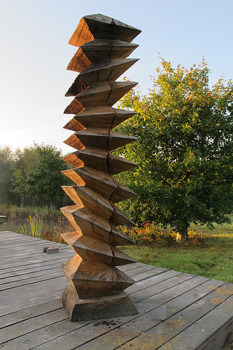 He has a reputation for producing avant garde and innovative sculpture in reclaimed wood and/or fallen trees (oak, cedar and elm).