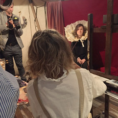 Warhol: at the factory, making screen prints, polaroids and his films.