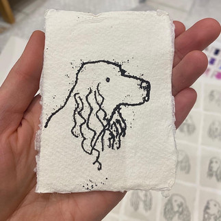 Gouache on handmade paper, a water based technique which is different from water colour. Holly Frean uses gouache with a brush or as illustrated above with potato cut.
